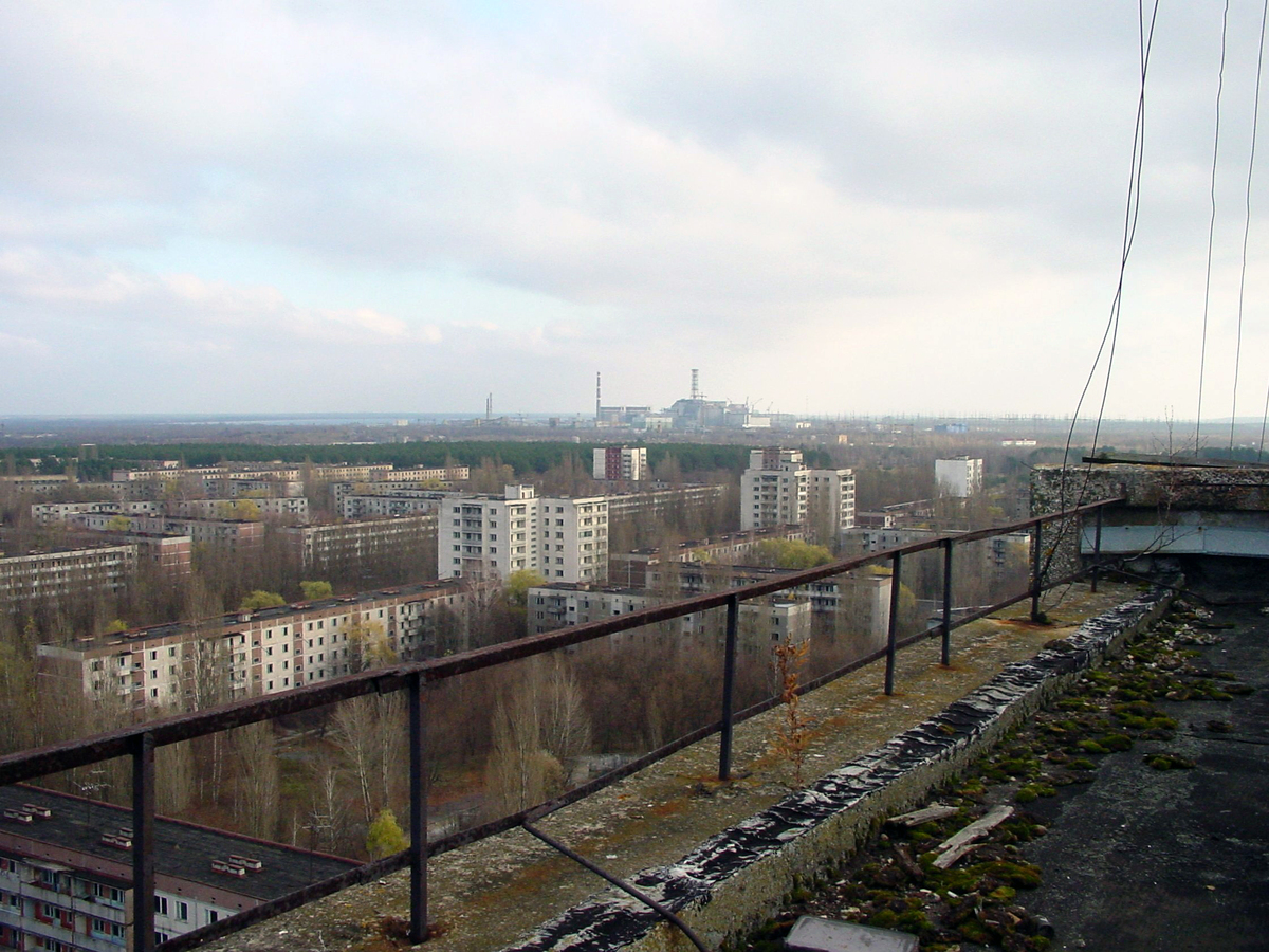 The abandon city of Pripyat, with the Chernobyl reactor in the distance, Huffington Post
